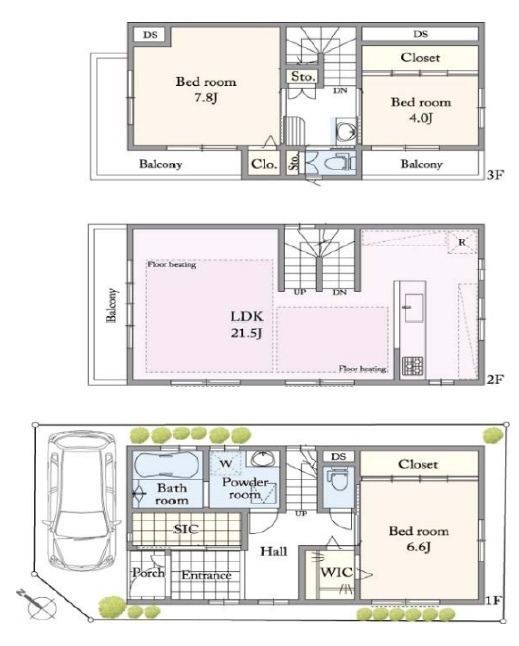 3LDK LDK21.5畳 洋室7.8畳 洋室6.6畳 洋室4畳 |