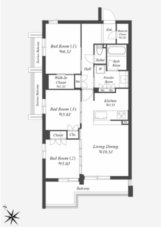 | 間取り | 3LDK 洋室6.5畳 洋室5畳 洋室5畳 LDK16畳 |
